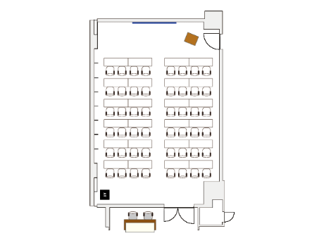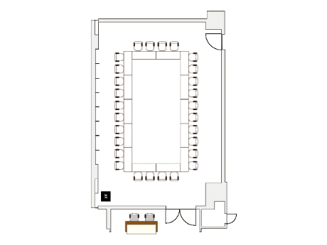 Rooms 302 and 402 and 404 and 405 are just the right size for events with roughly 30 members. Both rooms have large glass windows and an open, spacious feel. They also have comfortable chairs that can be used for long periods of time without becoming restless, making them great environments for long training sessions. Event participants can also relax at the Kiosk lounge.