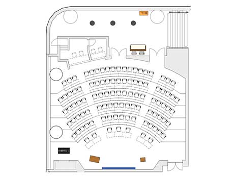 The Amphitheater, with its multilevel design, is perfect for events such as new product launches in which it is important that everyone can see the stage. It has two glass screens that can be projected onto for presentations with rich visuals. There is also a dedicated lobby, which can be used for PR activities such as displaying products.