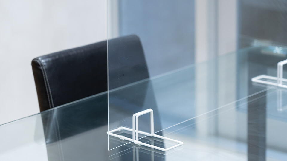 その場合は、会議室内にアクリルパーテーションを設置し、参加者と参加者の間をパーテーションで仕切る方法も飛沫対策に有効です。