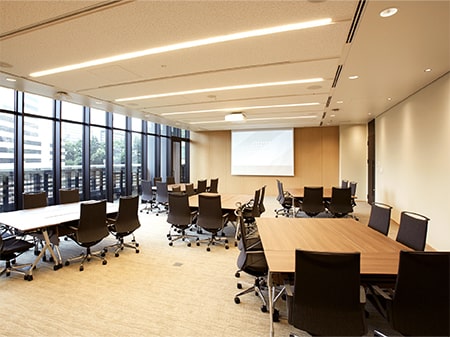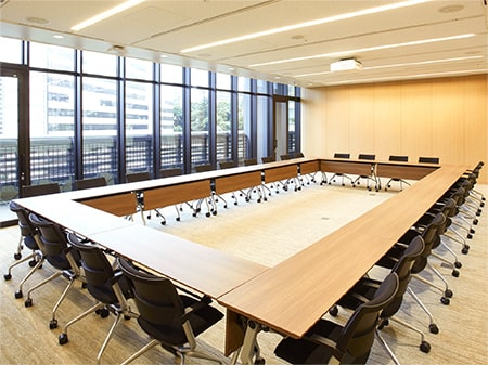 30名程度の研修であれば302/402/404/405のご使用をおすすめします。いずれの会場も大型のガラス窓があり広々とした開放感があります。また、疲れにくいチェアを導入するなど、長時間の研修にも集中して取り組める環境です。休憩時にはラウンジの「KIOSK」でひと息つくこともできます。